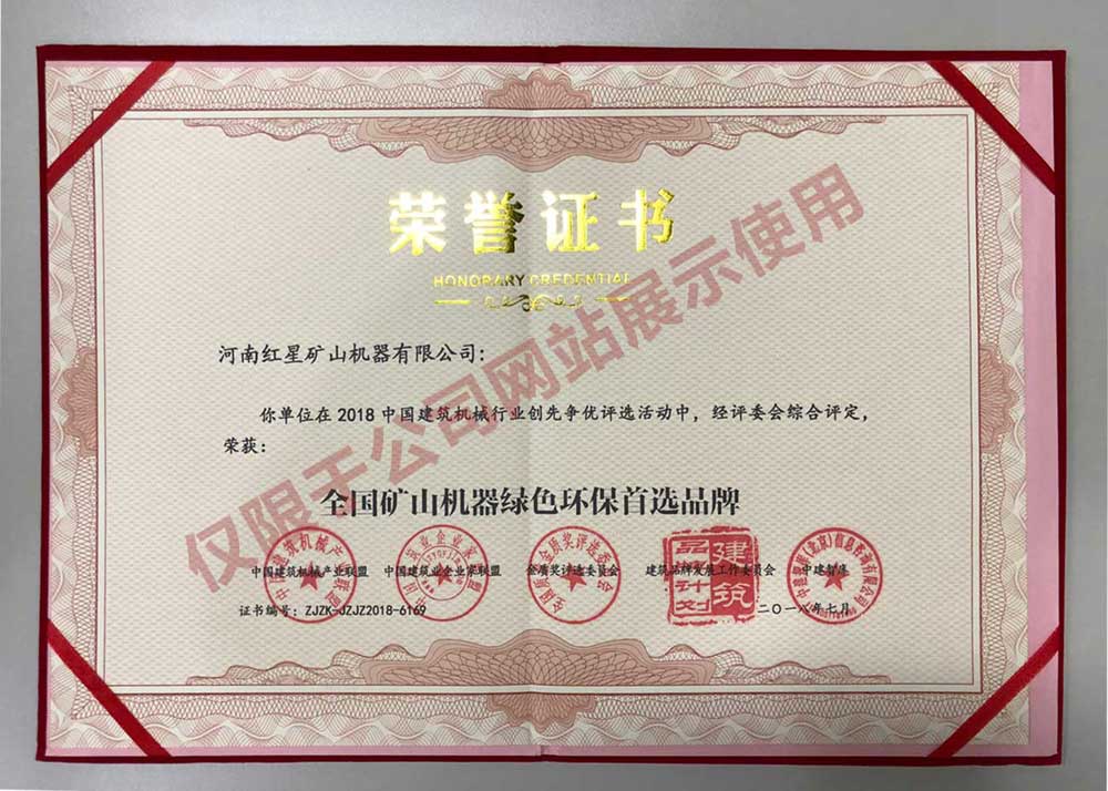 為順應綠色礦山時代發(fā)展需要,結(jié)合客戶實際現(xiàn)場需求,紅星一直在設備研發(fā)路上奮進,被評為“全國礦山機器綠色環(huán)保首選品牌”。查看證書