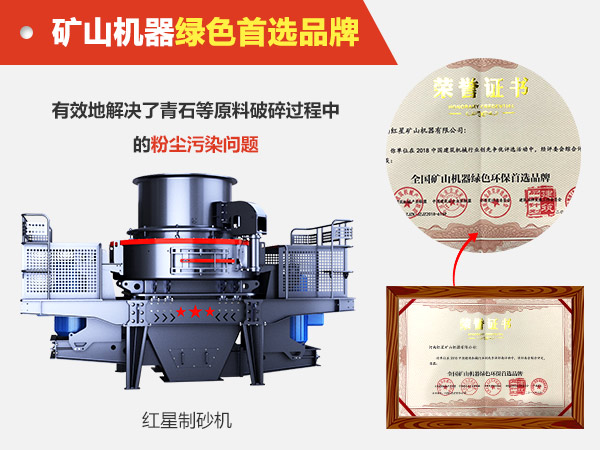 說到環(huán)保,紅星機(jī)器廠家有話說,這是一家專門從事砂石設(shè)備生產(chǎn)的廠家,在研發(fā)、生產(chǎn)設(shè)備方面,從不固步自封,不斷汲取國外創(chuàng)新制砂技術(shù),總結(jié)國內(nèi)傳統(tǒng)經(jīng)驗,堅持研發(fā)和生產(chǎn)效能高、節(jié)能、環(huán)保的制砂機(jī)。至今已經(jīng)延伸出多種型號,除了以自身品牌命名的“HX”系列,同時還包括有“VSI系列”和“HVI系列”等。