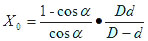 雷蒙磨的最大給料粒度可根據(jù)下圖計算。設(shè)磨環(huán)內(nèi)直徑為D,磨輥直徑為d,給料粒度為X0,鉗角為α,物料與磨環(huán)、磨輥之間的摩擦系數(shù)為f。